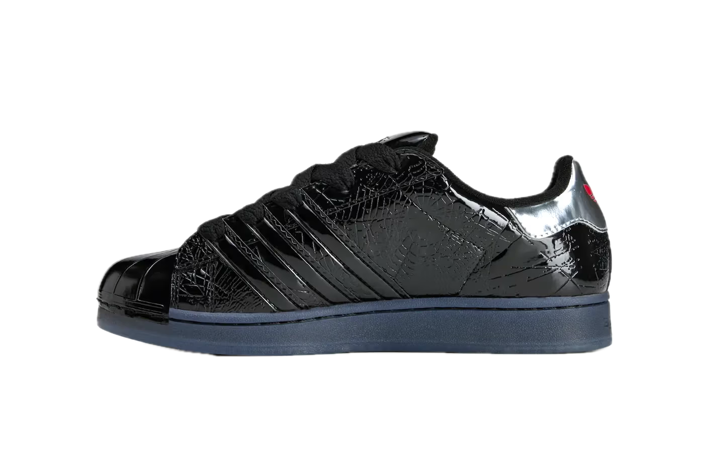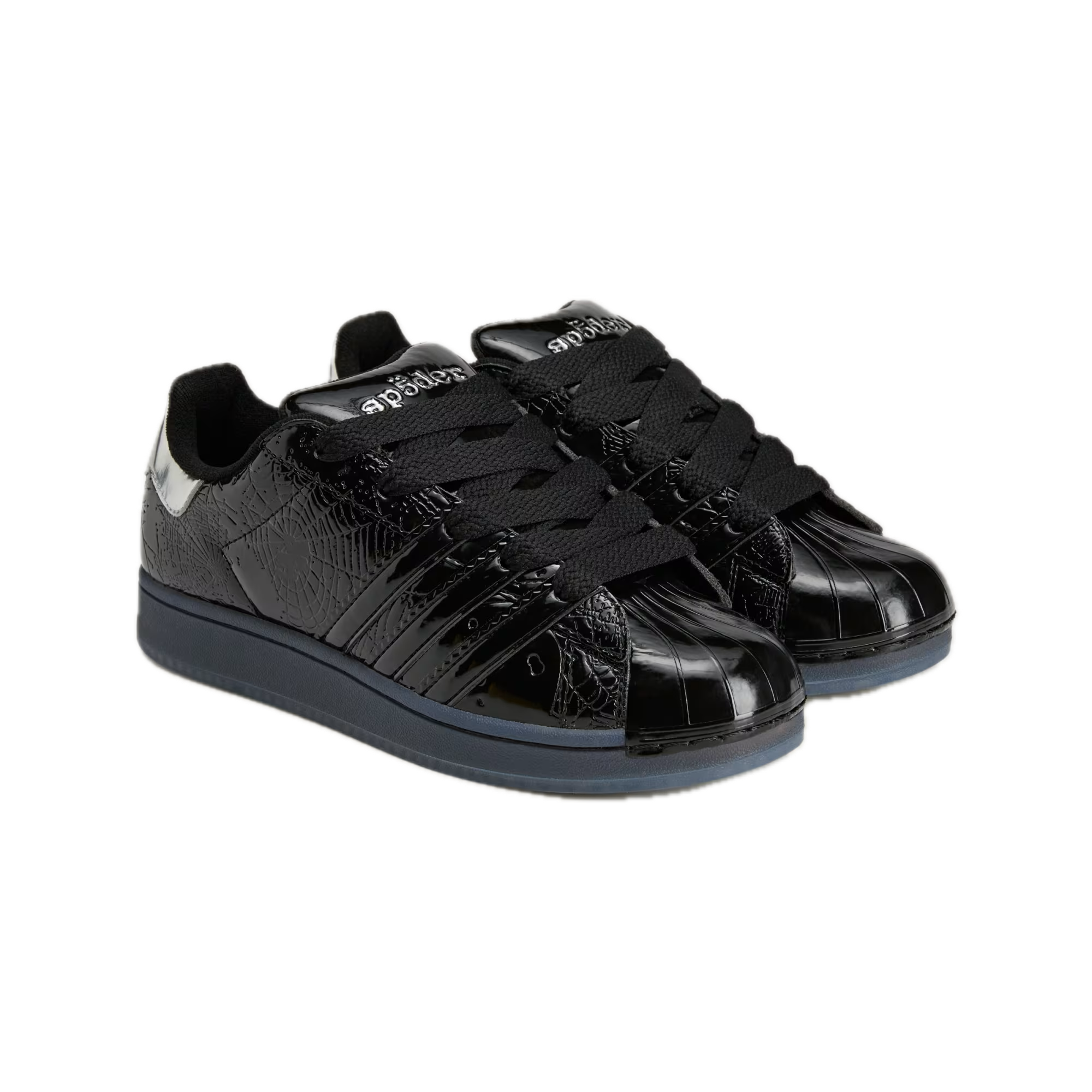 Monochromatická černá dodává modelu minimalistický, ale zároveň silný charakter. Detaily inspirované estetikou Sp5der zdůrazňují moderní a expresivní styl, který vyniká v městském stylingu. Klasický design Superstar s charakteristickou gumovou špičkou si zachovává svou ikonickou DNA.