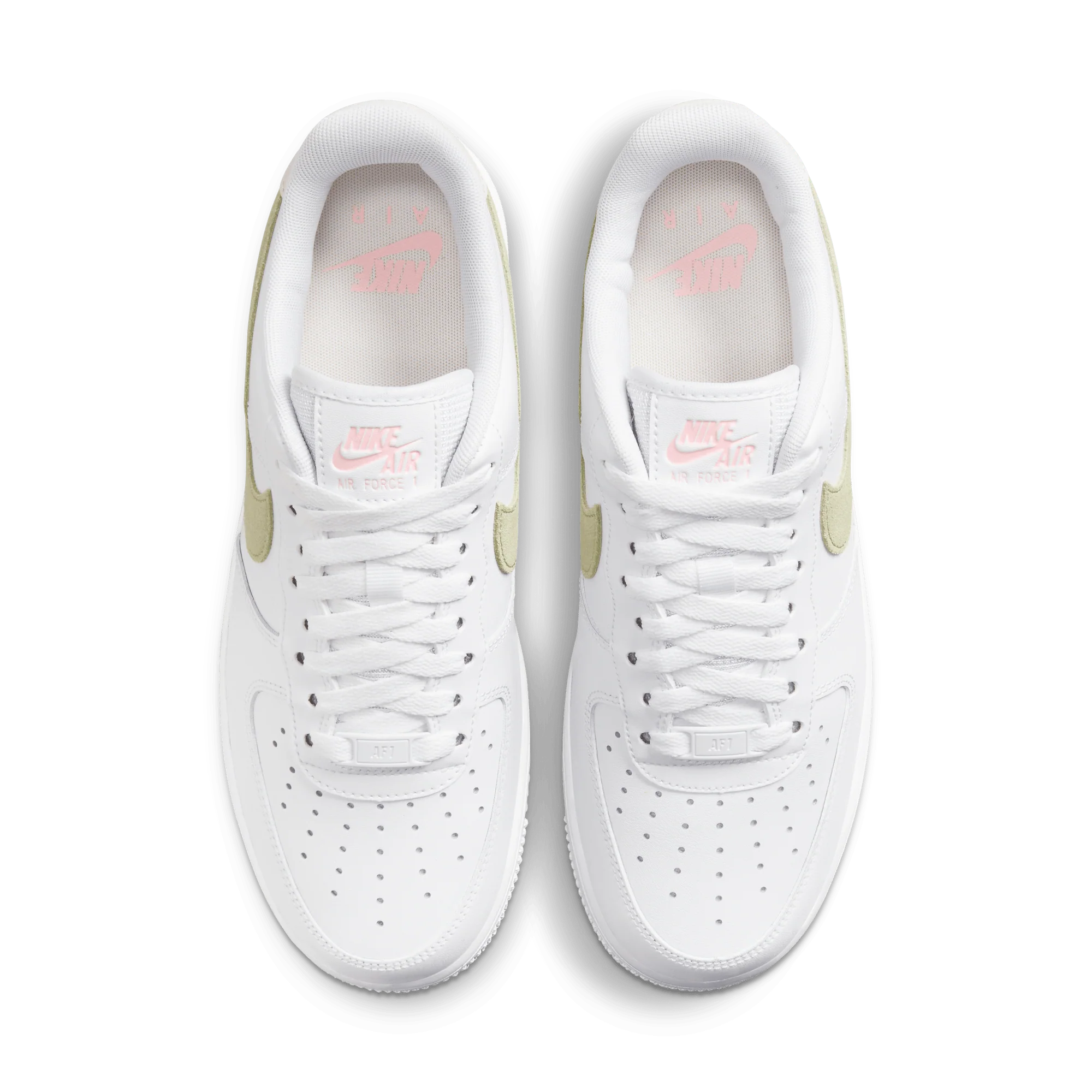 Klasický bílý svršek s kontrastními olivovými detaily dodává botám elegantní a svěží charakter. Nízký výstřih a výrazný Swoosh zdůrazňují všestranný a nadčasový design modelu AF1.