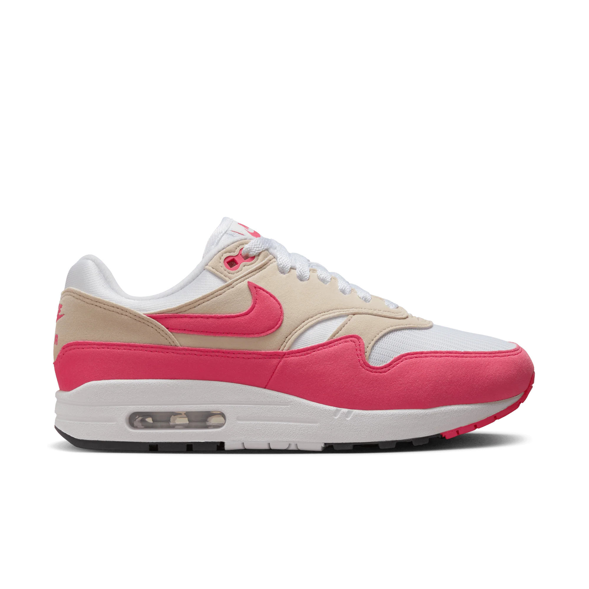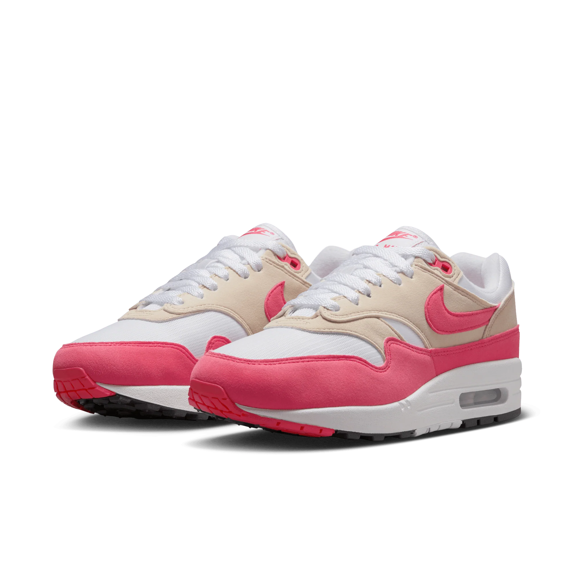 Tyto tenisky se vyznačují jemným barevným schématem Aster Pink – kombinací pastelové růžové se světlými, neutrálními tóny. Vysoce kvalitní panely ze síťoviny, kůže a semiše vytvářejí lehký a stylový svršek. Kultovní řada Air Max 1 zdůrazňuje její klasický, lifestylové charakter.