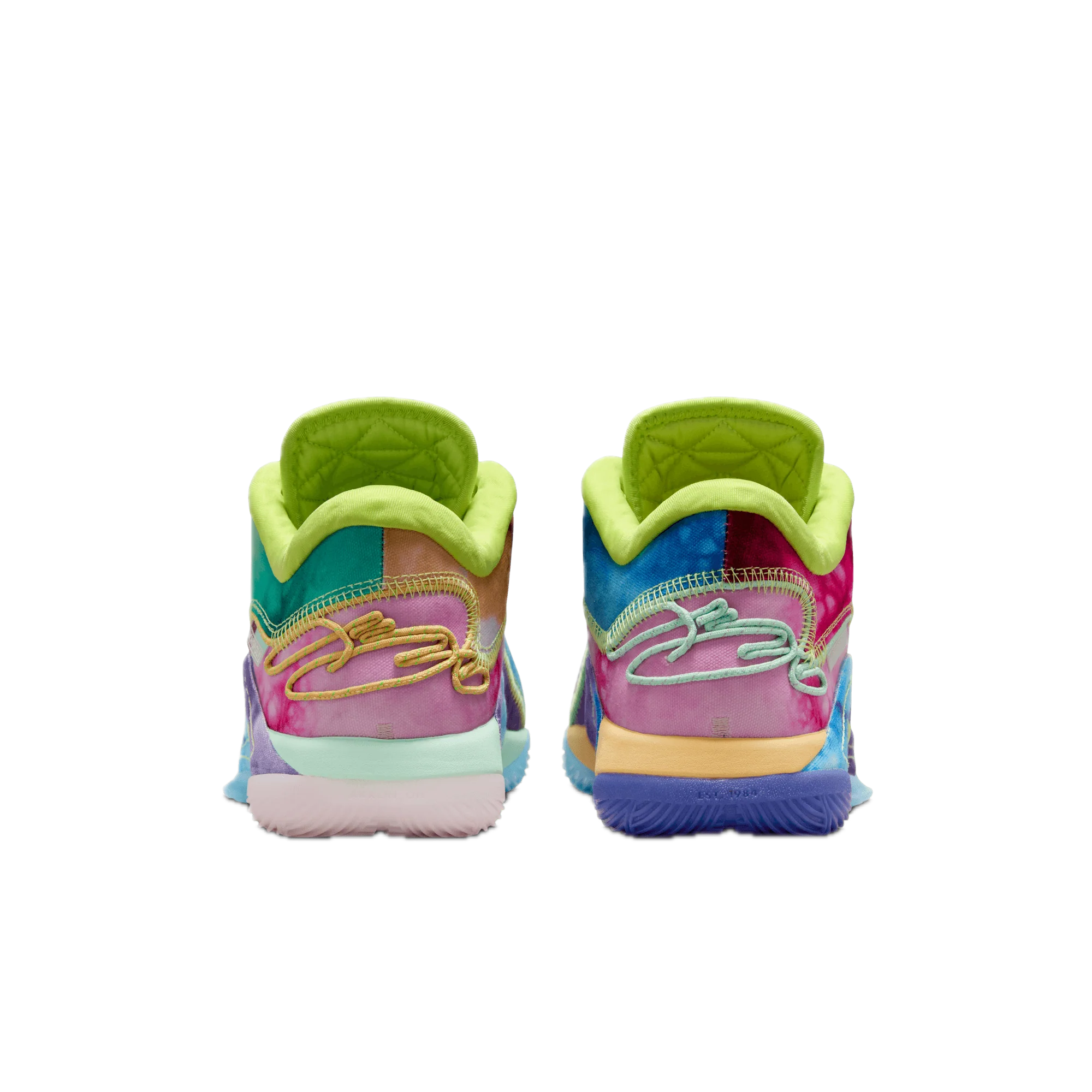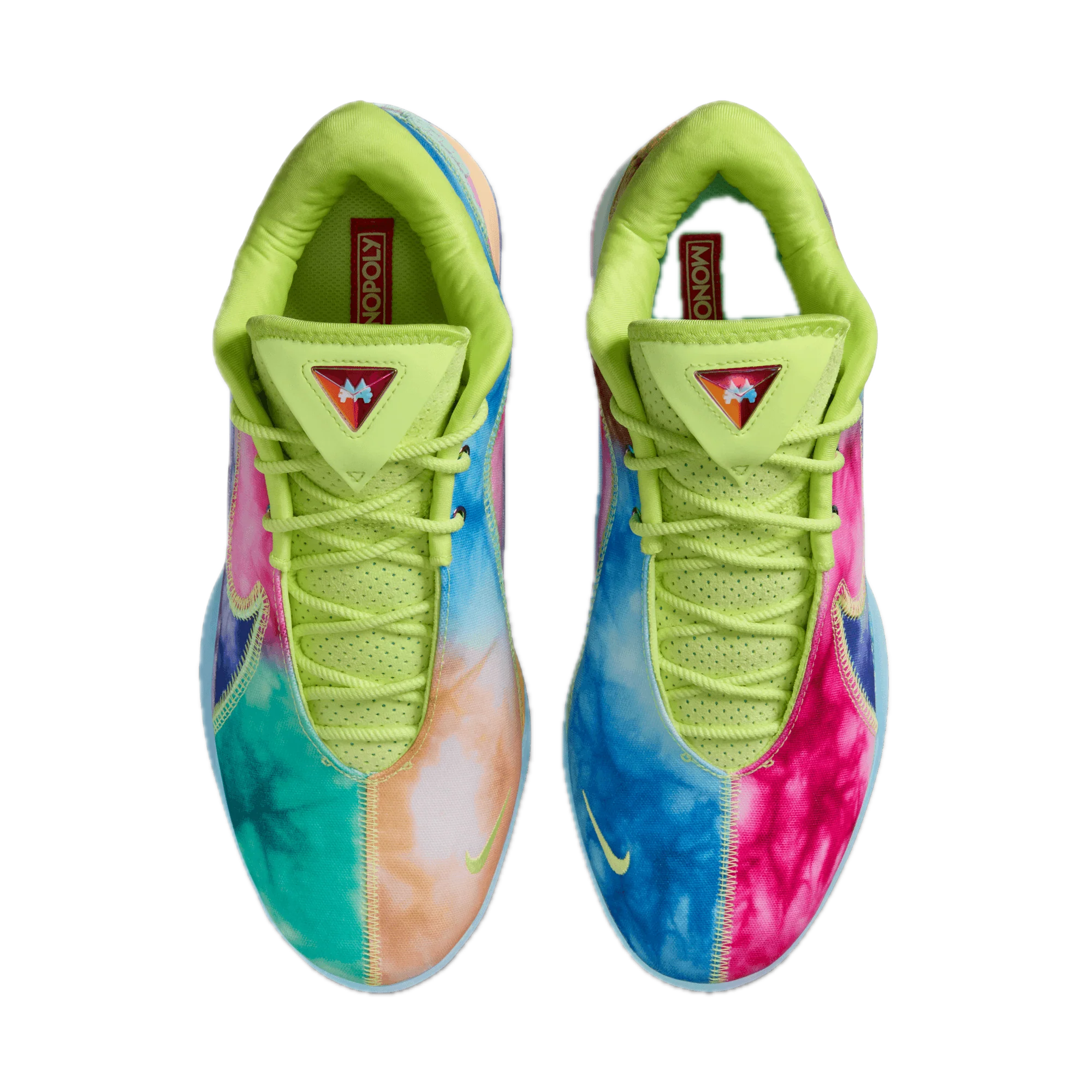 Tenisky Nike LeBron 22 What the Monopoly Tie-Dye (průsvitná podrážka) kombinují inovativní technologii s jedinečným a poutavým designem. Tento model, inspirovaný hrou Monopoly, se vyznačuje batikovanými barvami a průsvitnou podrážkou, což vytváří jedinečný sběratelský vzhled.