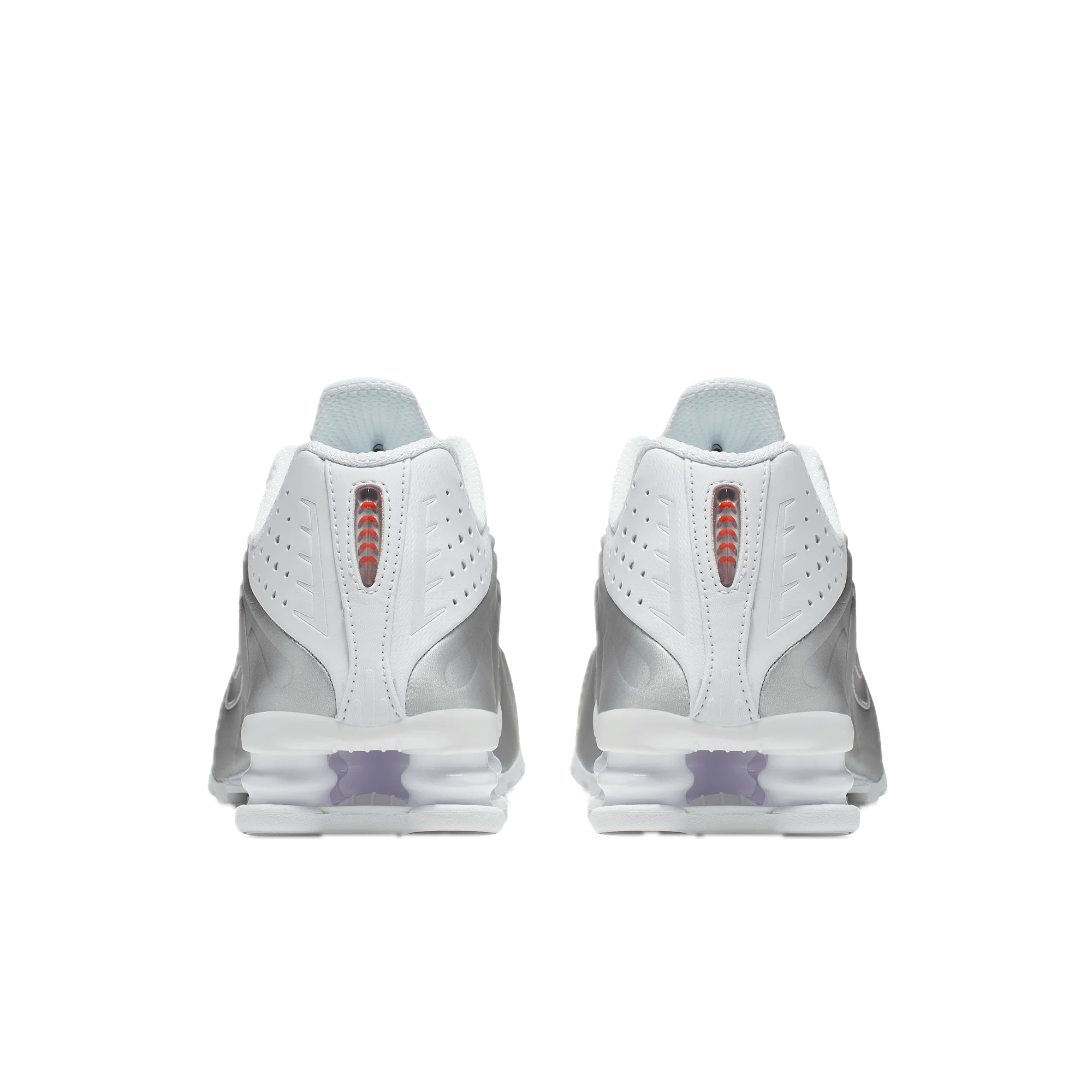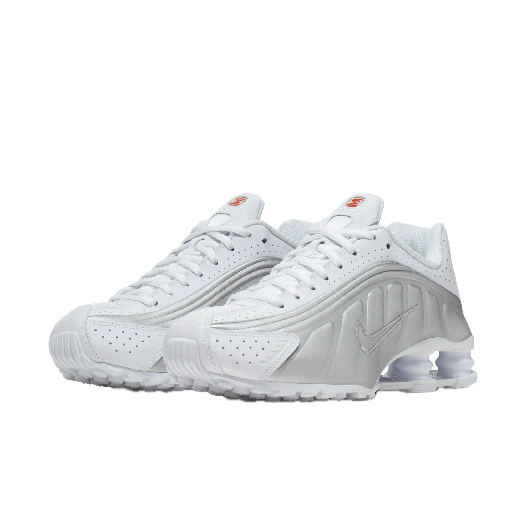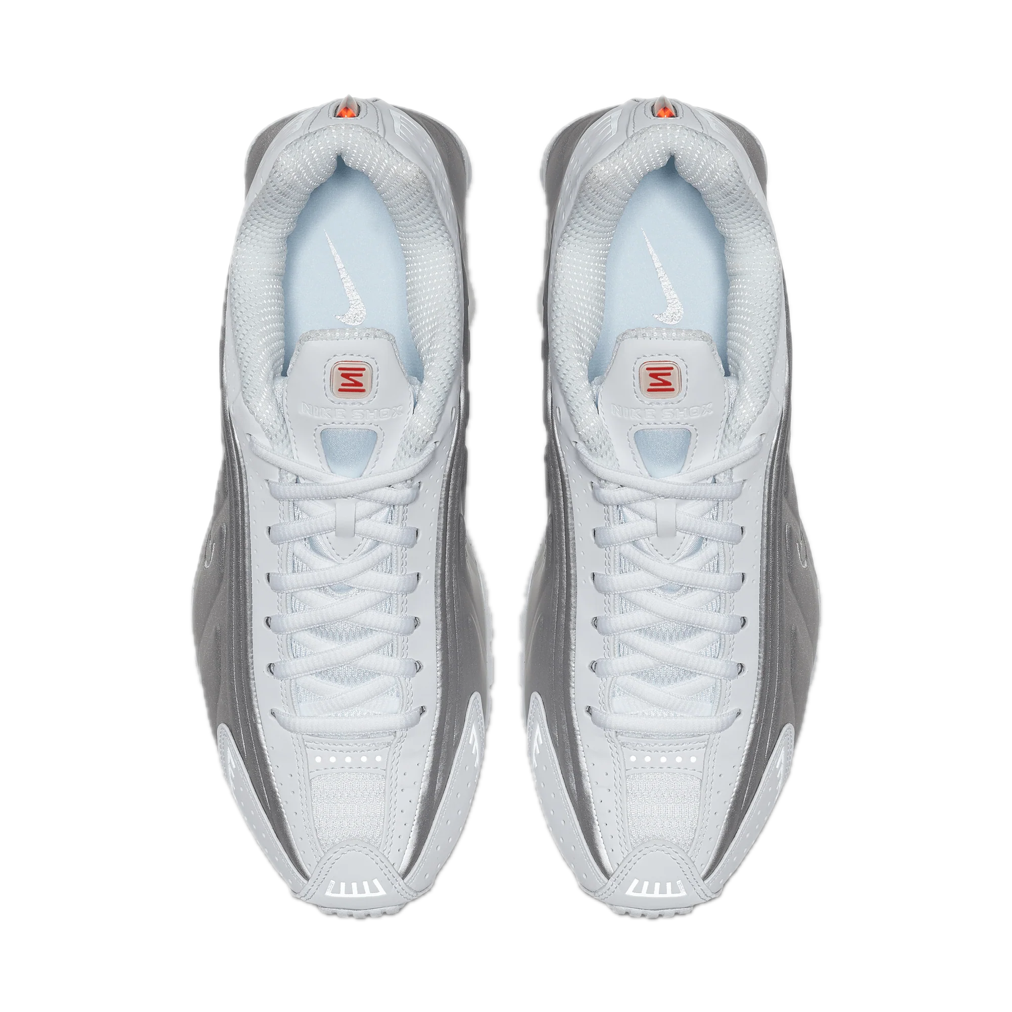 Model se vyznačuje svrškem v odstínech bílé a metalické stříbrné, který teniskám dodává svěží, lehce futuristický vzhled. Silueta modelu Shox R4 si zachovává klasické proporce a stříbrné detaily mu dodávají eleganci a jedinečný charakter.