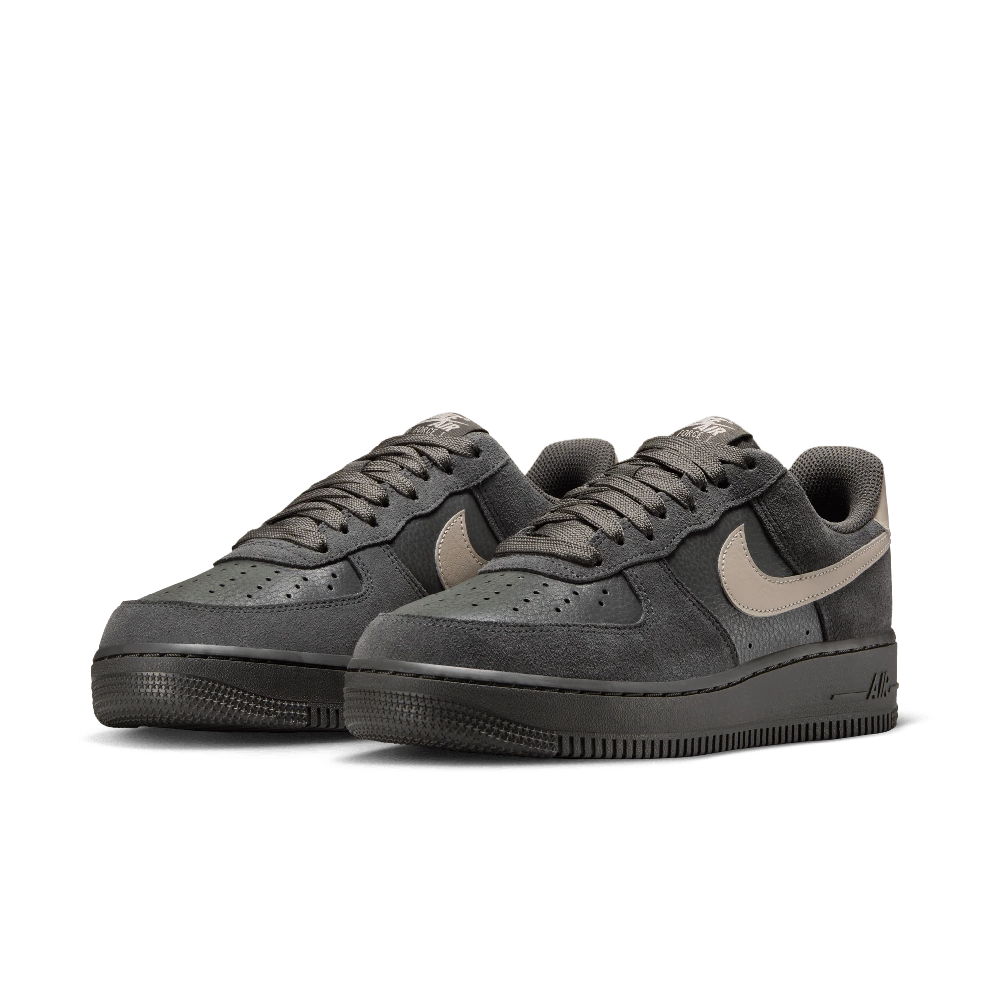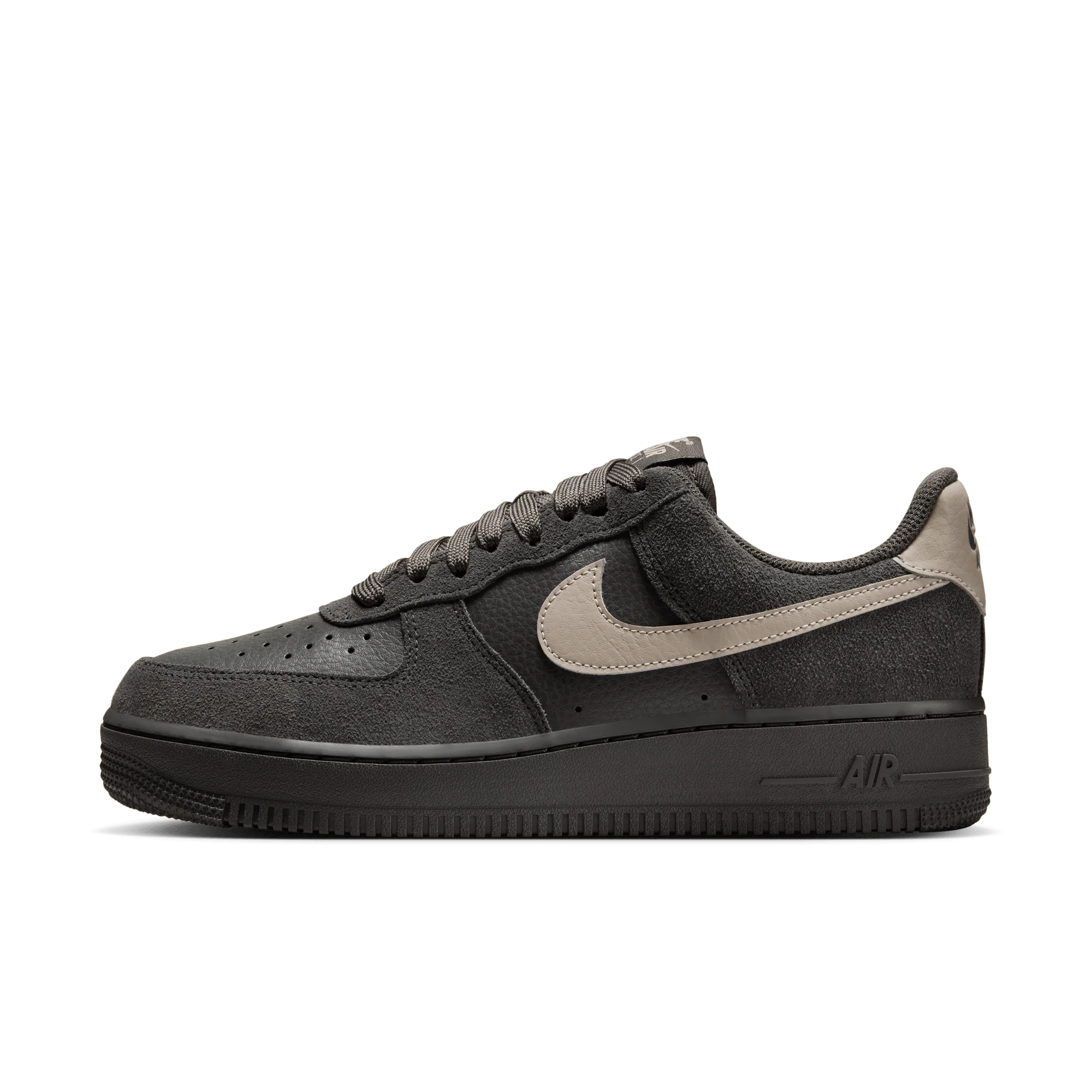 Model je v tlumeném odstínu Medium Ash, což botám dodává elegantní a všestranný charakter. Kožený svršek V kombinaci s klasickými detaily Swoosh a podrážkou vytvářejí nadčasový, minimalistický vzhled. Perforace v přední části chodidla zajišťuje odvětrávání a sportovní pocit.