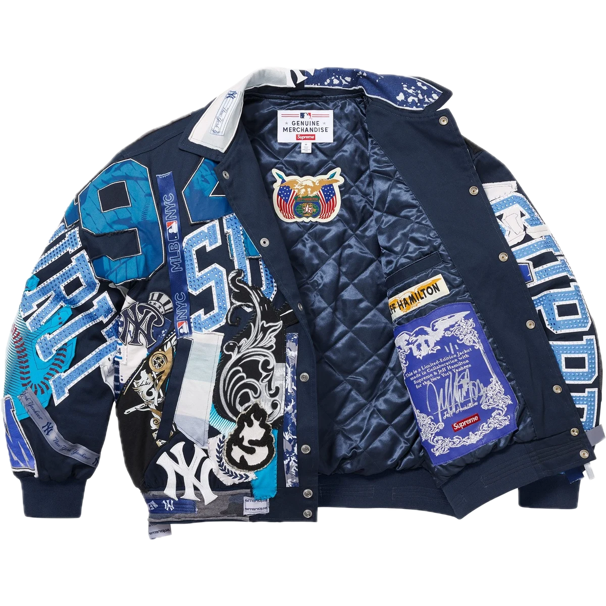 Bunda Supreme Jeff Hamilton New York Yankees Varsity je unikátní bunda vytvořená ve spolupráci s legendárním návrhářem Jeffem Hamiltonem. Tento model kombinuje DNA newyorské streetwear značky Supreme s odkazem ikonického baseballového klubu New York Yankees a vytváří tak jeden z nejznámějších sběratelských kousků v historii Supreme.