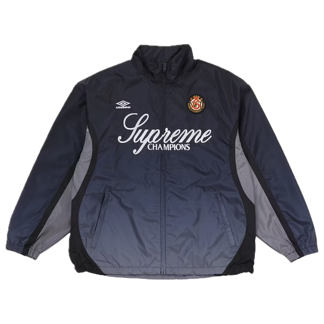 Černý základ bundy je prolomen jemným gradientem, který dodává modelu moderní charakter a odlišuje ho od klasických sportovních bund. Značky Supreme a Umbro zdůrazňují jak sportovní, tak i streetwearovou DNA, díky čemuž je bunda ideální pro městský styl inspirovaný sportovně-volnočasovým stylem.
